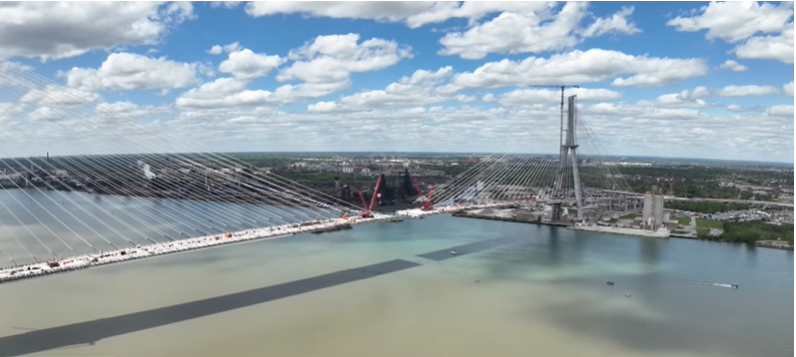 Once operational, the bridge will rise 150 feet above the Detroit River and span 720 feet, making it the largest port along the U.S.-Canada border. It will provide direct access to I-75 and I-96 in Detroit and Ontario Highway 401, improving passenger and freight traffic.